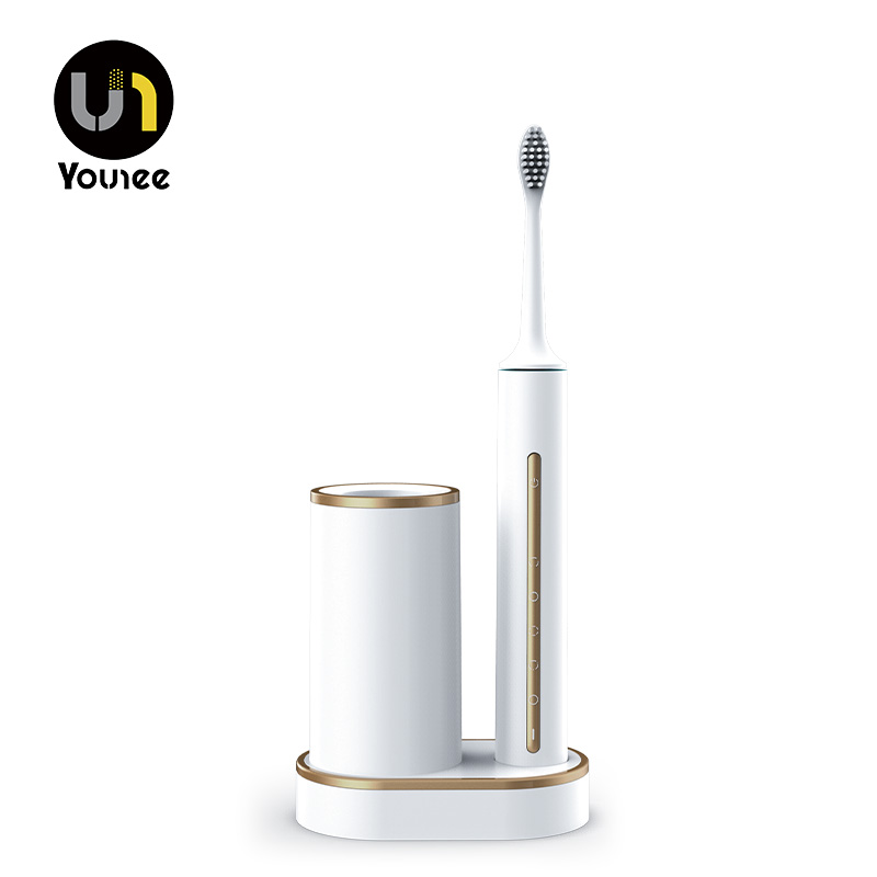 1. YT-33 es un cepillo de dientes eléctrico acústico de carga inalámbrica con lámpara UV, que utiliza material de cerdas de nailon ABS+TPR+.